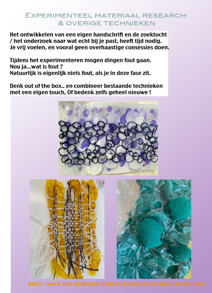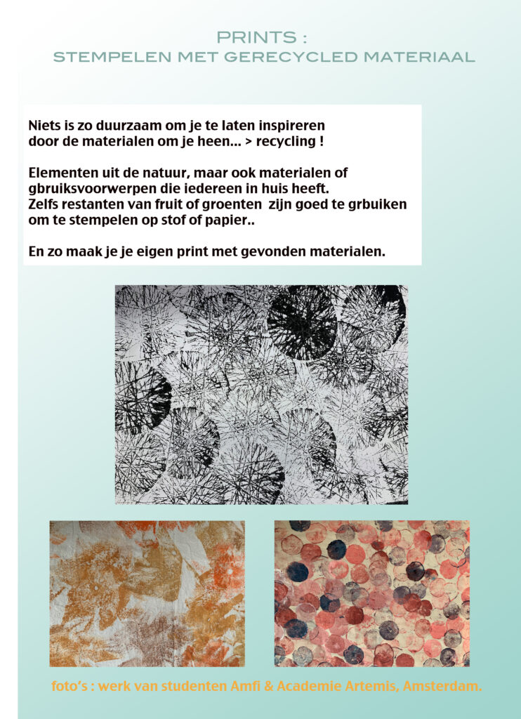 Experimenting with materials, colors, prints can be done in many ways, and I offer this in several programs ( 1 day or more )