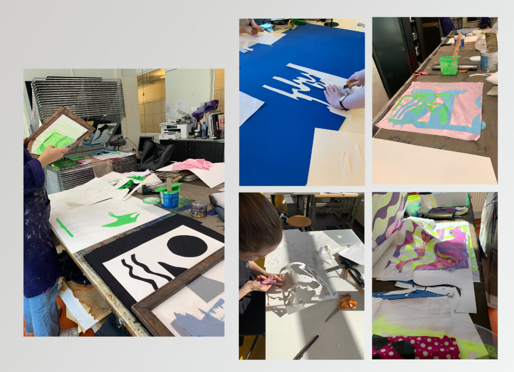 – handmatig prints maken d.m.v.  sjabloneer techniek.