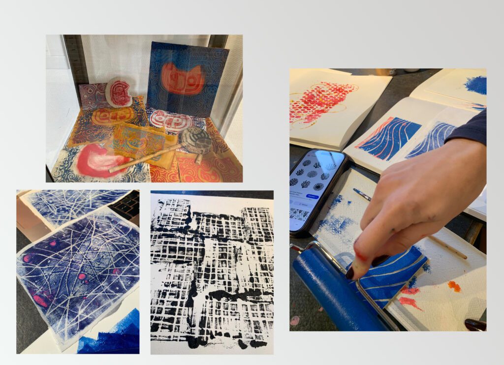 – handmatig prints maken d.m.v. stempel techniek met lino of recycle materialen.